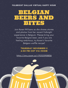 November Social Event: Belgian Beers and Bites Virtual Happy Hour Submit a Comment Cancel replyYour email address will not be published. Required fields are marked *Comment * Name * Email * Website Save my name, email, and website in this browser for the next time I comment.
